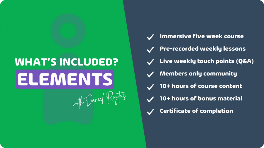 Elements 5 week course with Daniel Roytas . Use SAVE50 to receive $50 off (usual price $149)